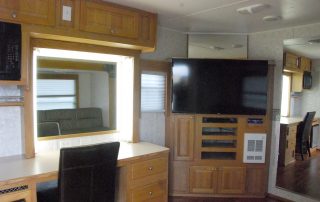 Keep your talent happy and comfortable with all the amenities in this forty foot 2 room trailer with pop-outs and showers! Two identical rooms, each with: Fully lighted, extra-large makeup stations, color TV/VCR, fold-up table, AM/FM/Cassette stereo, refrigerator, microwave, stove, fold out sofa, heat and air conditioning.